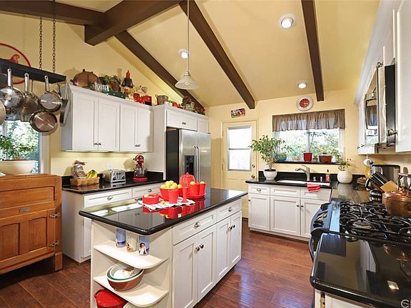 Upon arriving you are welcomed into this retreat style home through an old-world craftsman entry door, setting the stage for the quality & workmanship that awaits. As you enter you are immediately drawn to the warmth of the living room with its vaulted & beamed ceilings and expansive stone fireplace. The kitchen is every gourmet cooks dream with shaker cabinetry, custom lighting, stainless appliances, endless counters and center island. Off the kitchen, a delightful al fresco dining deck for sipping morning coffee and watching the sunrise. 3 restful bedrooms are thoughtfully placed, ideal separate spaces with everyone now at home. Retire downstairs to your romantic master retreat with its own private patio and en-suite bath with dressing area. Through the glass slider you step into whimsical terraced grounds. Nestled in nature, surrounded by tree and mountain views, tranquil sunsets & starlit nights. Tom Sawyer style adventures await with a two story tree house and a fabled tire swing. Snuggle around your fire pit for star gazing & S'mores. Sustainability beckons with space to have organic eggs and a vegetable garden. A third patio with dining & lounging areas, meandering pathways, lawn area for kids & pets at play, make these grounds dreamy for outdoor entertaining. Feel like you in your own secluded paradise with so many intimate & restful spaces yet conveniently located to Downtown LA, Old Town Pasadena, Burbank studios, Angeles National Golf Course, hiking trails & more!