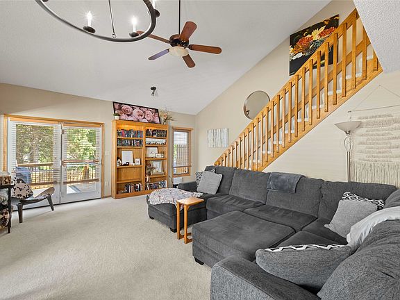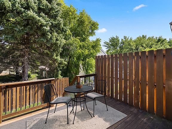 Finished basementPrivate deckEnd unitMature treesPeaceful backdropSoaring vaulted ceilingsUpdated kitchen