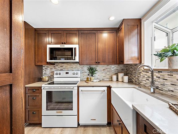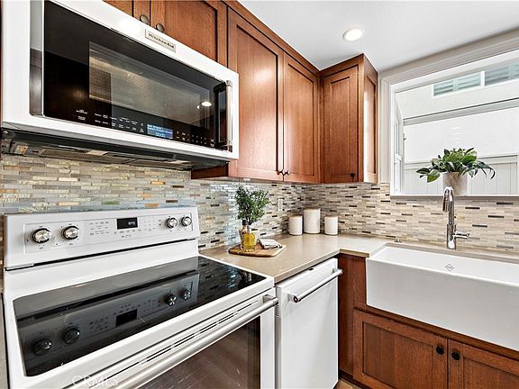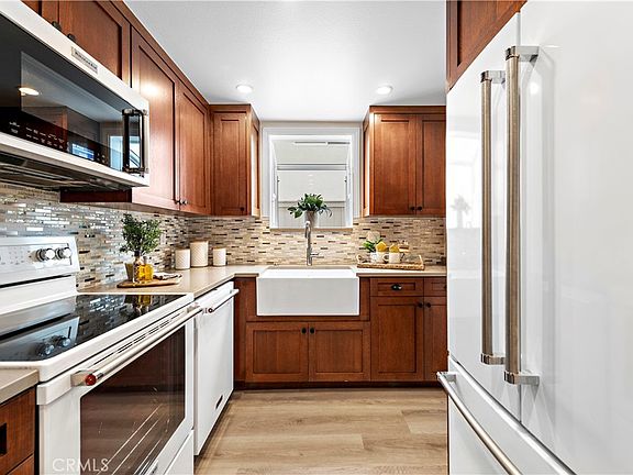 Walk to the beach! Located in the heart of Newport Beach, this gorgeous remodeled townhome is just a quick walk, bike ride or 3 min drive to the beach and strip of multiple shops, eateries & parks. It is also just a 10 min & under drive to all the golfing and attractions of Newport Beach & Pier, Newport Beach Country Club, Balboa Island, Balboa Beach & Pier, Harbor Island, Fashion Island, and Big Canyon Country Club while being walking distance to numerous scenic hiking trails & the surrounding highly rated school district. The premium end-unit 2 bed, 2.5 home has all the upscale features & amenities you could want, from the full set of high-end designer KitchenAid appliances that all convey with the sale (including the washer & dryer), to the all quartz counters, shaker style cabinets, tile & quartz backsplashes and new modern baseboards throughout. This stylish beach home is equipped with brand new luxury vinyl plank flooring, designer fixtures, remodeled kitchen & bathrooms, fresh paint, in-unit laundry and a spacious private patio enclosed by a privacy fence. The open floor plan includes a cozy fireplace w/ a designer stone hearth, a formal dining area w/ a slider to the back patio and a powder bath downstairs, while upstairs both bedrooms feature mirrored closet doors and en-suite bathrooms boasting exquisite quartz stone shower walls, decor mirrors, new lighting & tile flooring. The home also includes an assigned private detached garage space and is located conveniently in the complex just around the corner from the sparkling blue pool & clubhouse, perfect for the days you want to lounge and soak up some sun without going to the sand! This home won't last, don't miss this opportunity to move into this elite turnkey Newport Beach home just in time for summer!