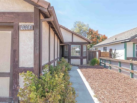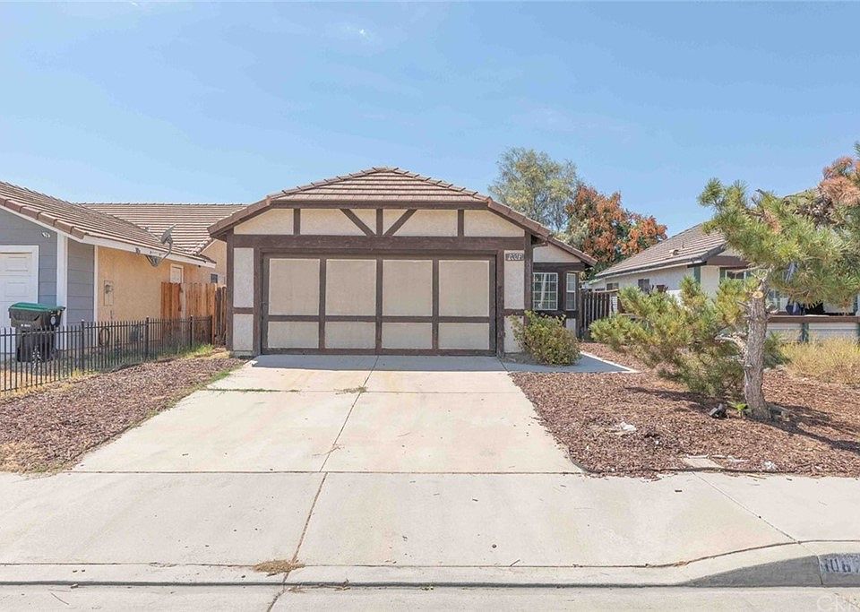 Welcome home to Terra Linda, a no HOA and Low Tax community, situated on the west side of Hemet. This quaint European inspired exterior, single-story home built in 1986 with 2 bedrooms, 2 full baths, 1,090 sqft. of living space is ready and waiting for the next new owner. Front landscape is very easy care with minimal plants for cost effective curb appeal. Walkway to the front door with covered porch and interesting half timbering accents creates a quaint entry for owner and guests. Kitchen has a wonderful breakfast nook for those morning coffees or evening meals at home. Ample cabinetry, overhead and below in kitchen with full pantry make storing easy and with its cozy design, everything is in reach and clean up is a breeze. Kitchen also provides access to a formal dining area and large spacious living/family room with vaulted ceiling for an open and abundant feel with access slider to the back. Hallway provides access to the garage, extra bedroom, secondary bath with tub/shower combo and hallway linen closet. Primary bedroom features an access slider, large closet and ensuite private bath with walk- shower. Backyard is ready and waiting for your landscape design. This home is ideally situated with close shopping for common items and comfortable access to the 215 freeway and Menifee's premiere Haun Road shopping and dining development. This home will not last. Priced right and ready to sell call now to preview and don't delay on submitting your offer.