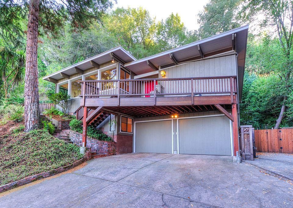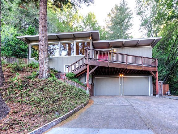 This 4 bedroom, 3 bath midcentury modern home nestled in a hillside has wonderful bay views and is in an ideal commute location just minutes to the freeway. Very private and peaceful on a 0.40 acre wooded lot featuring soaring redwoods and sunny decks for entertaining & BBQs. Spacious living room with a wall of windows and fireplace, plenty of office space, 3 beds and 2 baths on the main level and a separate bed/bath downstairs ideal for teen/in-law or family room. Large 2-car garage with workbench, along with lots of storage. Top rated schools. Not furnished. No smoking, no dogs, please! Open house: Thursday, August 5 from noon - 1:30pm; Saturday, August 7 from noon - 3pm; Sunday, August 8 from 1pm - 4pm. Assigned schools: - Neil Cummins Elementary - Hall Middle - Redwood High -- ranked among top 25 high schools for all of California. Available July 31. General terms: Security deposit: 1.5 monthly rent = $8850; with cats = $11800. Screening (includes credit query) is required per each adult occupant; fee is a nonrefundable $75/person but can be deducted from the first month's rent. Note: when responding please include an email address or a cell # for a direct response. I've been hearing from people that the Zillow replies are being filtered into junk mail. Tenant pays for all utilities, including trash/recycling pickup; landlord responsible for yard & general maintenance.