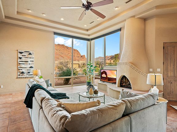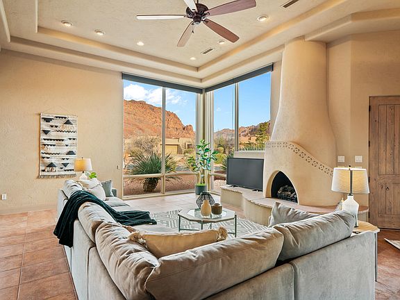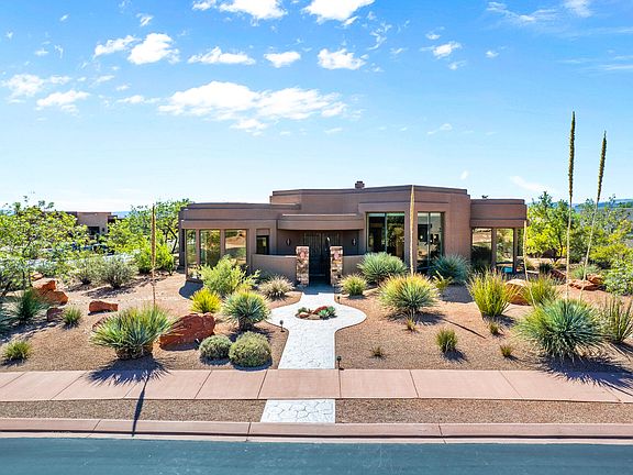 This great Southwest style home, built by Chris Hart, located in the prestigious gated community Citadel Estates. This home sits on an .52 Acre lot in a cul-de-sac with the best red cliff views of Tuachan and Snow Canyon. The large great room is made for entertaining. The 2nd bedroom has an en suite bathroom. The back yard is very secluded with a fountain for a peaceful getaway.
