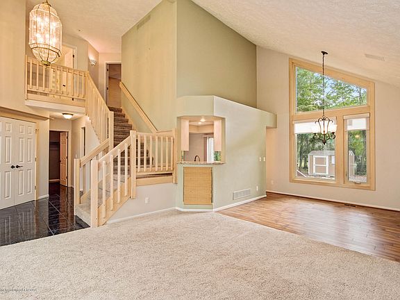 Welcome to the Trails at Lake Lansing. This contemporary 3 bedroom, 2.5 bath, 1.5 story home is waiting for you to move right in! A spacious foyer welcomes you into the open concept living area with vaulted ceiling, providing an airy, light and bright feeling accentuated with the addition of brand new windows throughout this month. The updated kitchen offers soft close drawers, recessed lighting, granite counter tops with backsplash and is open to the family room with slider to the deck and backyard; you'll love being able to make dinner while keeping an eye on the littles as they play in the family room- which also offers a charming gas log fireplace. Rounding off the main floor you have a spacious half bath and first floor laundry/drop zone coming in from the finished garage. Upstairs are the bedrooms, the master is large with walk-in closet, private bath with his & her sinks, huge Jacuzzi tub and large stall shower. The other 2 bedrooms, are serviced with their own private full