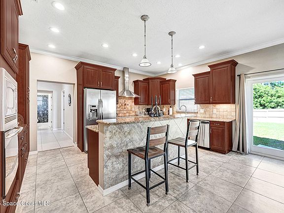 Lots of room in this 4 bed/2 bath block home! Checkout the quality of the remodeled kitchen! Fireplace Mantle & Kitchen cabinets are Real Cherrywood! Beautiful Granite Countertops! Wood Burning Fireplace! Roof New in 2020, AC new in 2023, bathrooms redone in 2023. Shed New in 2023! Split Plan! Area off Kitchen could be used for a kids toy/game area! There's an extra room that could be an Office/Computer room! Large Living Room and a Dining area! Family Room and outside backyard area wired for surround sound. Close to Bayside Lakes shopping and restaurants! NO HOA! Selling As-Is - Inspections Welcome!
