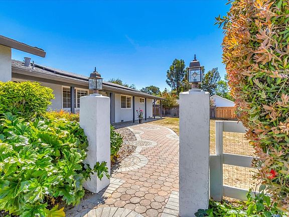 BACK ON MARKET, NO FAULT OF PROPERTY! Idyllic horse property situated in the heart of the peaceful countryside of Gilroy's wine district yet 5 minutes drive to shopping, restaurants and freeway. Priced to sell far below Zillow estimate!!The single story light filled house with owned solar opens onto a stunning enclosed garden complete with waterfall and gazebo and then simply open the garden gate to over 3 flat acres of lush white fenced paddocks, large riding arena, stables, barns and multiple storage buildings. The property is currently home to a very lucky large family of horses but the huge, open flat central parking area, RV hookups and various outbuildings make it well suited for many other purposes. Huge variety of fruit trees and raised vegetable planters make this delightful home a gardeners dream! House is perfect as it is or the huge lot provides scope to add on, rebuild, or build additional guest house and ADU (buyer to verify)