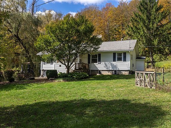Ideal ranch home in a beautiful country setting! This 3 bedroom home sits on 5.85 acres and is move in ready! Home features a nice open floor plan with vaulted ceilings, tastefully renovated throughout. Kitchen boasts granite counters and all appliances, dining area, large living room, all bedrooms on one level, pantry, laundry room and sun porch. There is a full basement with 2 car garage in part of it. Entertain on the private deck behind house and soak up the views or the pond. EZ drive to Corning, PA etc. Make appt right away! It's an affordable MUST SEE!