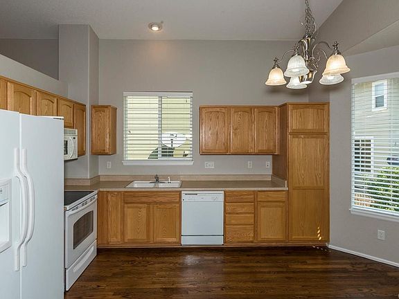 Welcome home to this beautiful 3 bed 2.5 bath Highlands Ranch home in the desirable community of Firelight. The dramatic entry offers soaring ceilings & a formal living room plus dining room. The vaulted ceilings, gleaming hardwood floors, and open kitchen space highlight this amazing home! The eat in kitchen features a wall of bay windows overlooking the back patio & low maintenance fenced in yard. Stepping down from the kitchen you will find a large family room perfect for kids as well as entertaining. The large master suite is spacious enough for a king size bed & has walk-in closet, dual vanities, plus garden tub. 2 large secondary bedrooms are also upstairs. Tall ceilings in the 2 car garage. This well cared for home features high-end carpeting & 2 inch wood blinds and 2 year old new roof! Conveniently located near many backcountry trails & parks, including Firelight neighborhood park, Spearwood. Rent $2195 Deposit $2195 Pet friendly with additional fully refundable $350 pet deposit.