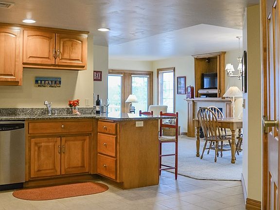 This two bedroom, two bath, waterview end unit will really surprise you! Completely turnkey with furniture and furnishings, the unit has not been in the rental pool and is lightly lived in. The split bedroom floorplan includes an open concept living-dining room with loads of windows and gas fireplace, a kitchen with stainless appliances and granite, and a spacious waterview deck. Located within same building as the indoor pool, owners' lounge and exercise room, making it ideal for wintertime stays too. This downtown condominium is walking distance to all Sister Bay activities. The unit also includes a large private storage closet located in building's lower level. Additional fees of approximately $213 per quarter for cable and internet.