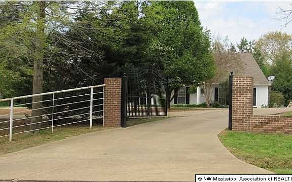 Country Living in Tate County! Bring your Horses and Cattle! 40 ACRES with PIPE FENCING around entire road frontage and pastures are divided by fencing. Metal Barn with 4 custom stalls and rubber mat flooring throughout barn, 1 acre pond, catch pen, loafing shed, fantastic riding trails on this property! There is also a potential income producing Mobile Home at the far end of this property that will transfer with the sale! Impressive brick columns on each side of the residential drive entrance with electronic gated entry open to this beautiful landscaped, 2 story Traditional Style home with Circle Concrete Drive and covered front porch with second floor full length balcony. 2 story foyer/entry with open stairway and balcony! Wood floors in Spacious Great Room with French Doors leading to patio, wet bar with closing doors, Plantation Shutters (throughout) and wood burning fireplace that could be converted back to gas. Fireplace is 2 sided but closed in on master bedroom side. Master bedroom is on first floor with wood floors and large bath with double vanities, sinks, corner jetted tub, separate shower and tile floors. Kitchen has Corian counters, center cooking island with drop in electric range and smooth surface cooktop. Huge window in the eat-in kitchen area that overlooks the amazing concrete courtyard and lends gorgeous natural lighting to the room! There is a formal dining room off the kitchen with wood floors! The 2nd first floor bedroom is very large and designed for a study but is being used as a bedroom. This room has a huge closet and a bath. The possibilities are endless! Head upstairs to find 2 additional bedrooms that each have access to the 2nd floor patio! One of the bedrooms has an adjoining play/craft room. The second floor also has a balcony on the back side of the house with views of the Courtyard/Patio with Water Fountain, Pool, Pond and Nature! Very PRIVATE! The Covered 2 Car Carport is a side entry and is attached to the MOTHER-IN-LAW/ADDITIONAL LIVING QUARTERS which is currently being used as a Pool House. This area has been UPDATED throughout recently (all new and very nice) and has a private entry, eat-in-kitchen w/new microwave and oven, living room, large bedroom w/closet and full bath and this living quarter does have its own HVAC unit! Views from the home and additional living quarters are spectacular with the mature trees and landscaping surrounding the concrete courtyard/patio with water fountain! Look just a little past the courtyard and there is also a stunning IN-GROUND Swimming pool with diving board and sun patio around pool! This is a beautiful property and really has more details than can be included here! If you are looking for a large country home with manicured acreage and all the bells and whistles, consider this magnificent property!
