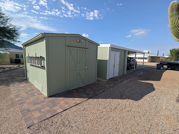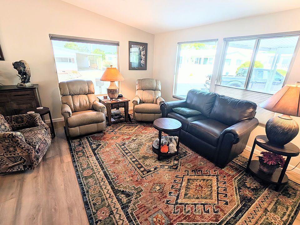 UNFURNISHED RENTAL. Freshly Updated Double wide Home with Wonderful upgrades: New Flooring, Two Bedrooms, PLUS Private Office, Large Outside Storage Shed and Attached Golf Cart Garage, Shop Storage. Kitchen updated, Stainless Appliances, Granite tops, Washer+Dryer included. Large Screened Porch and also Outdoor Open Patio. SERVICE ANIMALS ONLY. Community Clubhouse and Pool. Longer term leases welcome!
