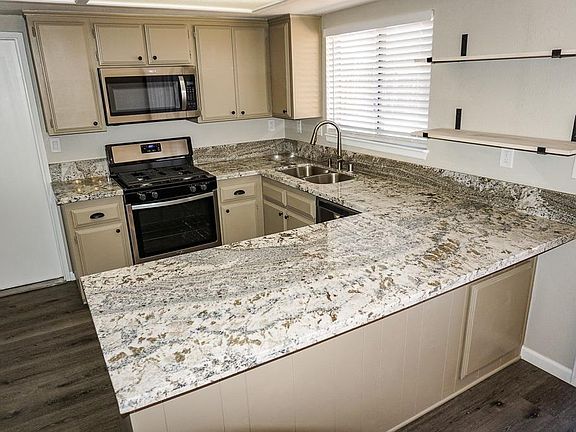 Come see this beautifully upgraded home in Apple Valley for under $230,000! This home boasts many qualities that include the UPGRADED KITCHEN with granite counters, stainless steel oven/range, stainless steel over the range microwave, stainless steel dishwasher, custom built shelves, new stainless sink/faucet fixture and vinyl laminate(wet area approved) flooring. The Living room features a stacked stone fireplace with mantle, vinyl wood laminate on the floors, new 2 tone paint and new baseboards. Master bedroom with new carpet, new light fixture, new blinds, new 2 tone paint, new baseboards and new closet doors. Master bath with new vanity including solid surface counter top, new tile backsplash, new mirror, new light fixture and new tub/shower water fixtures. Guest bedrooms with new carpet, new light fixture, new blinds, new 2 tone paint, new baseboards and new closet doors. Double door entry with stone surround, decorative wood shutters, rockscaping and courtyard area.This home also comes equipped with an AC unit and evaporative cooler for energy efficiency. Come see this one soon before it's gone!!