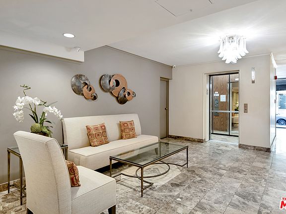 Prime Westwood, designer renovated 2 bedroom, 2 bath front facing unit -located on a quiet street! Stunning double door entry with foyer opens to a spacious 1,621 s.f. ( per assessor) home. Huge living room with high ceilings, wet bar, and a beautiful Carrera Marble fireplace! Serene balcony with peaceful views of the magnolia trees lining the street! New Appliances in kitchen, Carrera marble slabs in baths, recessed lights, new flooring throughout. Huge closets in primary bedroom, washer / dryer hookup in unit. Building features gym, pool, spa & sauna, banquet room with full kitchen .Low HOA dues, earthquake insurance inclusive. Secured parking for 2 cars, ( Tandem).