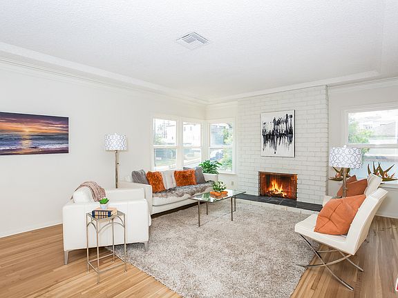 First time on the market since 1953! Situated on a capacious corner lot in a most convenient Westwood location -- UCLA just a mile northeast, Century City equidistant southeast -- this light and bright traditional 1940s-style family home sports nifty mid-century touches like corner, bowed and boxed windows, and an elegant white brick fireplace. Other features include newly refinished hardwood floors (protected by carpet since the early 1950s!) and original salmon-tiled bathroom with separate tub and shower. Primary and third bedrooms include en suite baths. Host huge family holiday gatherings in the central great room and savory summer barbecues in the enclosed, tranquil back yard. Additional storage available in small basement area adjacent to lower-level garage. Owner states: New AC installed in September 2019, foundation bolted in 2016 and copper piping is approximately eight years old.
