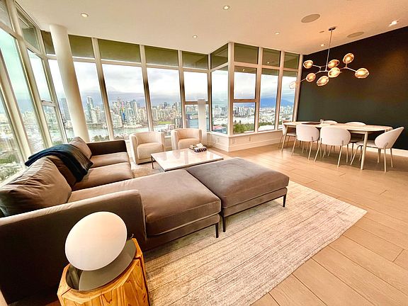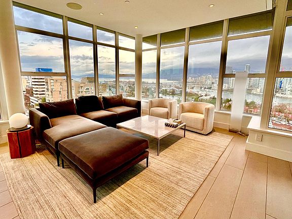 This luxurious, fully furnished 2-bedroom, 2-bathroom penthouse offers commanding, unobstructed 275 views of False Creek, Granville Island, Burrard Inlet, the North Shore mountains, and Bowen Island.