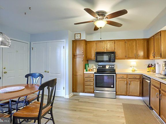 Welcome to this charming one-story townhome with a finished lower level! The 3-bedroom, 3-bath layout is simple and welcoming, showcasing brand new vinyl plank flooring in both the entry and kitchen. The kitchen is equipped with stainless steel appliances, plenty of counter space, a cut-out window over the sink that opens up to the dining and living areas, plus a cozy breakfast nook. The expansive living and dining room features vaulted ceilings and a sliding glass door leading to a rear deck overlooking the common area. On the main floor, you'll also find a hall bath, a primary bedroom with a walk-in closet and private bath, and a second bedroom. The finished lower level offers direct outdoor access and includes a third spacious bedroom with an oversized walk-in closet, a family room, and another full bathroom. There’s also additional storage in the utility room. And don’t forget—the home comes with a one-car garage!