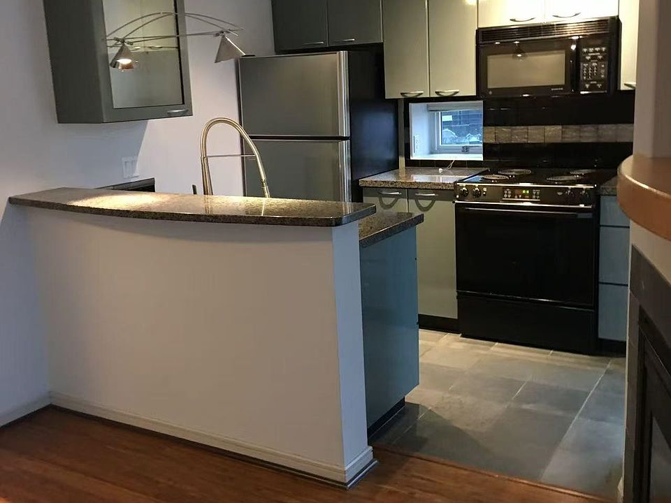 Open city viewGranite countertopsBamboo hardwood floorsCozy gas fireplace