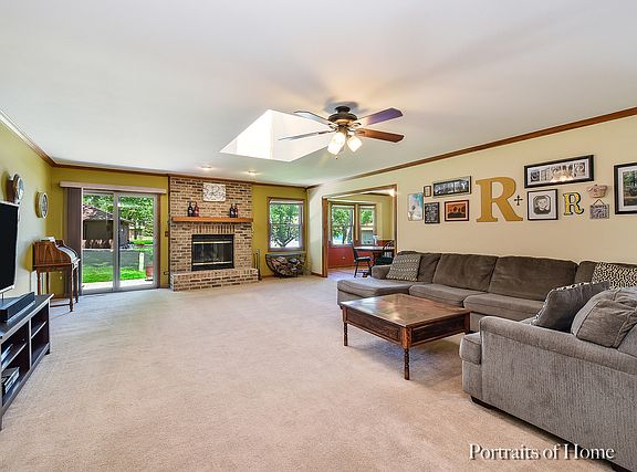 Welcome home to this spacious 3 bedroom ranch with an open floor plan. Light and bright great room w/ a brick fireplace, crown molding, skylight, and new sliding door to a large fenced yard and newer patio. Separate formal dining room w/bay window and crown molding , spacious eat-in kitchen with another sliding door to side yard with a patio, 1st floor laundry room w/ utility sink, master has full bath w/ double sink, skylight,jacuzzi & separate shower. Home also has full basement, newer roof, & hot water heater. Great neighborhood close to schools & shopping. Don't miss out!!