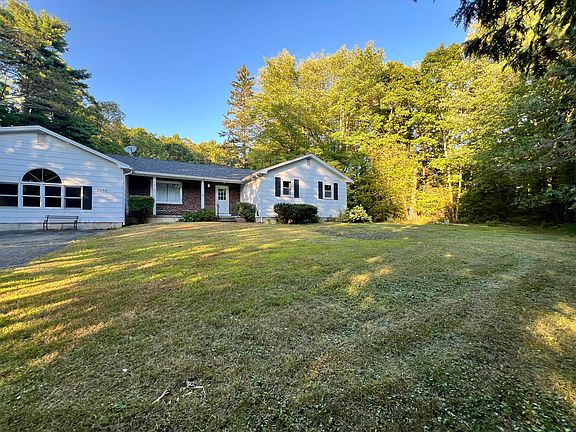 Single-Level Living at its BEST. This OVERSIZED Ranch offers 4 Bedrooms with an inviting Layout that's PERFECT for daily LIVING and Entertaining. Tucked Away on OVER 2 Private ACRES with Classic Rock Walls. You will enjoy Peace & Privacy while still being close to ALL Amenities. The Family Room is designed to IMPRESS- Expansive Windows that bathe with Natural Light, creating a Warm and WELCOMING atmosphere for GATHERINGS. The SUNROOM is the Heart and Warmth of this HOME with a custom Stone Fireplace, providing the perfect spot to RELAX & ENJOY the company of Loved Ones or the views - Year Round. This HOME is a Blend of Rustic Charm and Modern Comfort. The LARGE Kitchen and Dining area Flow Seamlessly into GENEROUS Living Space. Outdoors provides plenty of room for Play, Hobbies or Country Living.
