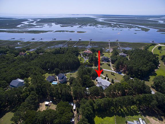 HURRY!! An expansive one story brick ranch on a spacious 2+ acres with glimpses of the Intracoastal Waterway that will steal your heart! NOT in a flood zone!HALF A BLOCK TO THE NEIGHBORHOOD BOAT LANDING ON THE INTRA COASTAL WATERWAY! Come home to a clean contemporary style house with large bedrooms and plenty of room for entertaining! Gracious rooms flow onto the patio to the beautiful in ground pool that is covered with a lanai to keep the pool clean. The pool is complete with its own diving board, entertaining and food service area with sink, and a full bath with a shower. Are you looking for a home shop or studio? The property has a separate building that currently is a double car garage with a workshop space at the back that could serve multiple purposes. Don't let this get away!! It would make an awesome artist studio, separate office space or shop set among the gracious and shady live oaks on the rear of the property. Behind the detached garage is a covered area to keep your boat! It is a pull through spot to provide quick and easy access for getting into the Intracoastal Waterway for fishing, shrimping, a day at the beach of Bull Island or spending the day in the wildness of Cape Romain Refuge. The Intracoastal Waterway is only a minute away with access via the Private Boat Landing in Romain Retreat. This lot is close enough to smell the salt air and be in the water in minutes! Large lot, large Oak Tress, spacious home with an in ground pool, centered in one of the most beautiful spots in the Low Country and close to all the history of Charleston! What a deal! Come see today! Let Your Dreams Come True!!