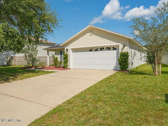Discover this move in ready 3 bed, 2 bath single-story home with 1,611 sq ft, built in 2005. The open floor plan welcomes natural light into spacious living and dining areas. The kitchen includes updated stainless steel appliances and ample storage. New laminate wood floor throughout and no carpet. The primary suite offers a large soaking tub, separate shower and generous sized closet. Enjoy serene water views in the back yard and low HOA fees. Located in Oceanway near River City Marketplace—plus parks, trails, and just 14 minutes to JAX Airport. Atlantic Beach and area attractions are easily accessible.