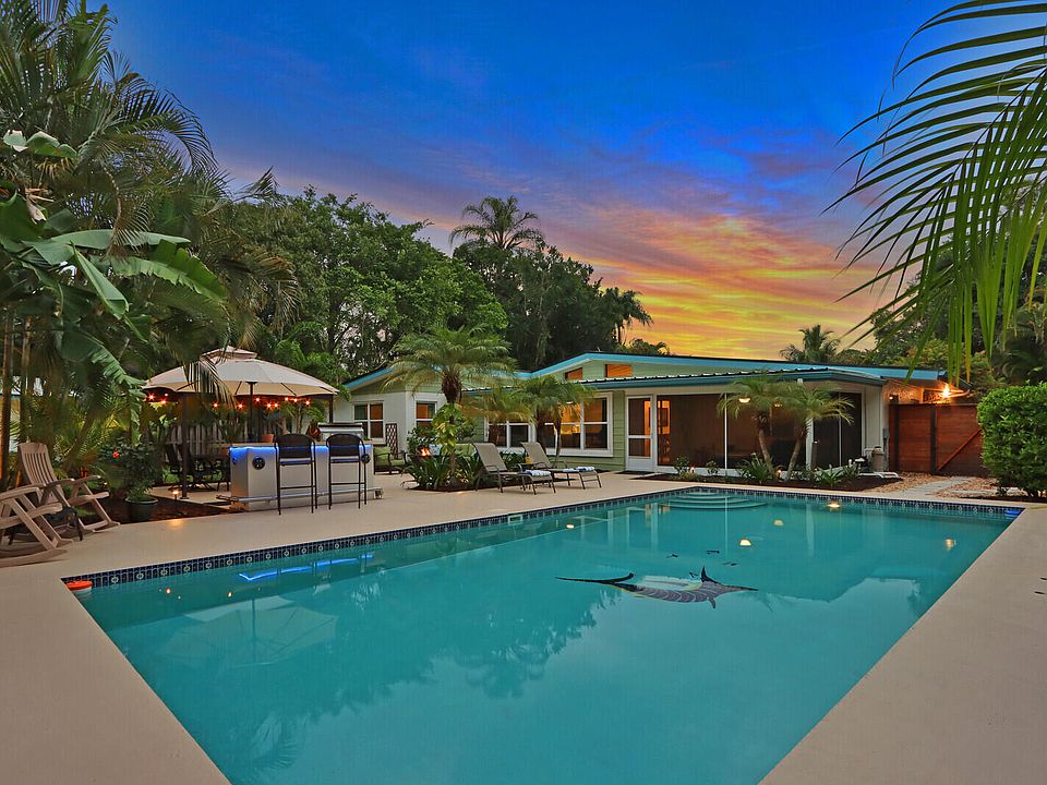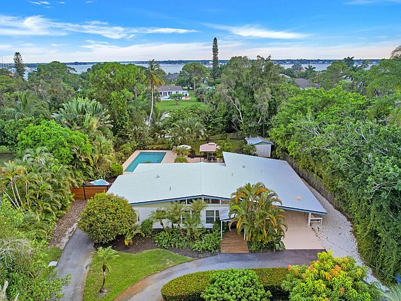 Showings Nov. 22 & 23 only this week. This stunning lakefront Mid-Century Modern POOL home located in the North River Shores area will fulfill your South Florida home wishlist! With solid concrete construction & new PGT hurricane impact glass windows and located only minutes to downtown Stuart, shopping, restaurants & beaches, this one-of-a-kind immaculate home shouldn't be missed! Situated on a .40 acre PRIVATE homesite, the fully fenced & lushly landscaped backyard is an entertainer's dream- & a true oasis with a huge heated pool (with brand new high efficiency pool heater), a new 5-person hot tub, new summer kitchen, new pergola & extended patio, & new screened in lanai. The interior of the home features 3 bedrooms, 3 bathrooms, plus office (or potential 4th bedroom with en-suite), in a split plan open layout with exposed cedar vaulted ceilings in the great room and all new luxury plank flooring throughout. The beautiful newly renovated master bathroom has solid surface counters, frameless glass shower and new tankless on-demand water heater. Other great features include a new A/C, all new electrical panels, new light fixtures/chandeliers & superior quality ceiling fans, new washer & dryer, & new Rainbird irrigation system! This could be your opportunity to occupy a beautiful South Florida home OR a fantastic revenue producing property for a savvy investor - owners collected approximately $50k in less than 5 months last season!