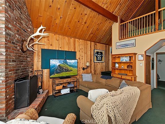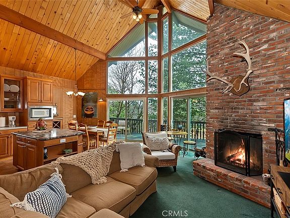 Desirable A Frame cabin is ready for new owners. Quintessential mountain cabin with open floorplan featuring vaulted T&G ceiling, wall of windows with brand new sliders out to deck, and brick fireplace for those cool mountain evenings. Nicely updated kitchen with ample storage, 5 burner cooktop, stainless sink and a large granite island. Main level also has two oversized bedrooms and a full bathroom. Upstairs is another bedroom which overlooks the living area and a half bath. Driveway repaved a couple of years ago. Convenient Crest Park location close to high school and Lake Arrowhead Village. Also great for an easy commute down the hill or along the rim on Hwy 18 to Skypark at Santa's Village, Running Springs or Snow Valley ski resort. Call today to schedule your private showing.