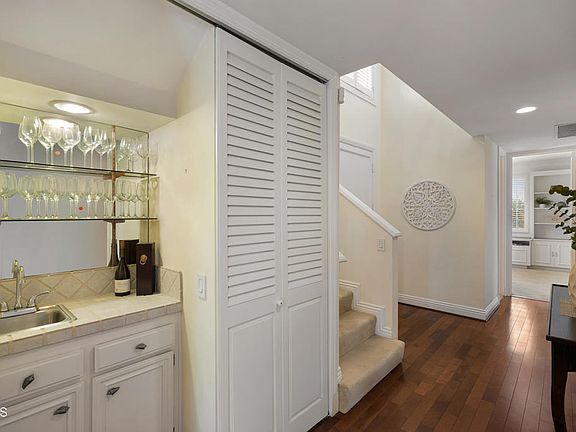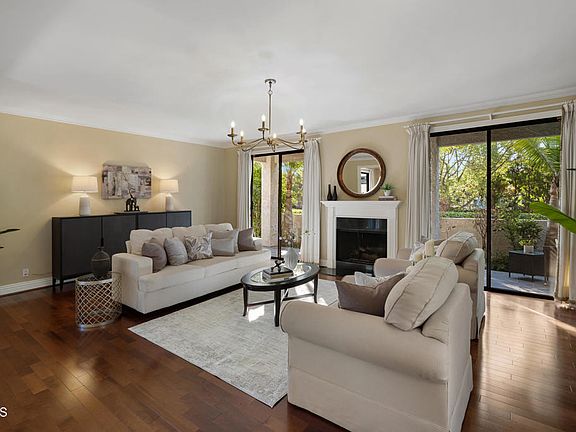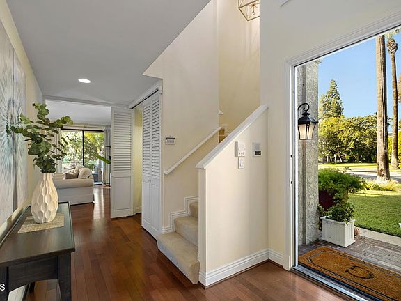 A rare luxury find nestled on the corner of Orange Grove and Madeline Drive, this freestanding residence offers the privacy and feel of a single-family home with the convenience of luxury condominium living. With no shared walls, timeless architecture, and expansive indoor-outdoor spaces, this one-of-a-kind property is an entertainer's dream in one of Pasadena's most sought-after locations. Lush and vibrant landscaping leads you to the front door, where, beyond the grand front entry, hardwood floors lead into elegant living and dining rooms adorned with crown and chair rail moldings. A gas fireplace with a stone hearth and classic white mantle creates a warm focal point in the living room, where dual glass sliders open to a private side patio. A built-in wet bar adds ease for entertaining, while the dining room seamlessly connects to the patio. The gourmet kitchen impresses with stone counters, a custom backsplash, a farmhouse sink, a 5-burner Samsung range, dishwasher, and breakfast nook with sliding doors that open to the back patio oasis. The flexible floor plan includes a downstairs bedroom (currently used as an office/den space) and an adjacent stylish 3/4 bath. Upstairs, two well-sized bedrooms share access to a generous balcony, while a beautifully updated bathroom features a custom-tiled shower and dual vanity. The spacious primary suite offers a walk-in closet and a spa-inspired ensuite with dual sinks, stone counters, and an oversized shower with bench seating. The crown jewel is the expansive 1,700+ sq ft private back patio, complete with stone tile, pergola-covered lounge areas, a fountain centerpiece, and ample room for al fresco dining or sun-soaked relaxation. Additional highlights include indoor laundry, secured subterranean parking and abundant closet and storage spaces, including a private locked storage room. Perfectly situated along Pasadena's famed South Orange Grove corridor, this residence not only delivers refined living but also front-row access to the iconic Rose Parade. A truly rare opportunity to own a stand-alone luxury home in one of Pasadena's most prestigious settings.