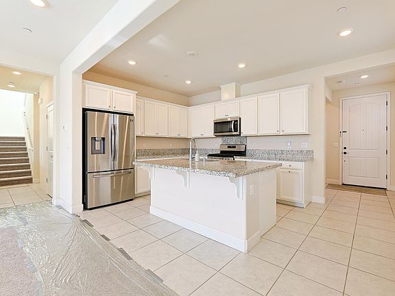 Discover this stunning 2019-built home, perfectly situated in a desirable neighborhood in Salinas. Impeccably maintained, this light and airy residence boasts modern touches throughout, featuring light gray tile and plush carpet flooring that blend style with comfort. The first floor welcomes you with a versatile bedroom and full bath conveniently located near the entrance, ideal for guests or multigenerational living. The open-concept kitchen, dining, and living room create an inviting space for gatherings. The contemporary kitchen shines with sleek granite countertops, custom cabinetry, stainless steel appliances, a spacious island with a sink, and a breakfast bar. An adjacent enclosed patio offers an excellent extension of your living space. The second floor brings convenience with an easily accessible laundry room. The expansive primary suite offers a true retreat, complete with a luxurious soaking tub, separate stall shower, double vanities, and an impressive walk-in closet. The low-maintenance backyard is equipped with a drip system for flower beds and a gas line ready for a future BBQ pit. The home is also pre-plumbed for air conditioning installation. Don't miss your chance to own this move-in-ready, spacious, home designed with every convenience in mind!