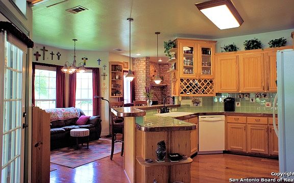 TEXAS LIVING AT ITS FINEST!!! Beautiful gated community off 281 and just minutes to shopping and HEB. Enjoy 3+ acres of meticulously maintained Texas Hill Country with many mature trees and plenty of wildlife. Figs, apples, pear, and peach trees dot the property. Large circular drive leads back to 2 car detached garage that makes for the perfect workshop. This fantastic home will not be on the market long!! **900FT+ UNFINISHED LOFT WITH PLUMBING NOT INCLUDED IN SQUARE FOOTAGE**