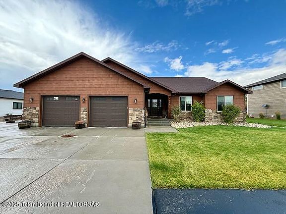 Discover this exceptional Wyoming home tucked within Pinedale's sought-after Trails Creek Subdivision. Offering 2,000 sq. ft. of living space, the residence was thoughtfully built in 2016 and features an airy open layout with vaulted ceilings, attached garage, and natural gas. The setting is ideal—close to bike paths, local schools, and neighborhood parks. A seasonal stream borders the property, creating a peaceful backdrop as you relax outdoors. The yard is beautifully landscaped with established trees and is equipped with a sprinkler system for easy care. Wildlife such as moose, deer, and antelope are frequent visitors to the area. This home combines modern comfort with Wyoming charm—come see it for yourself!