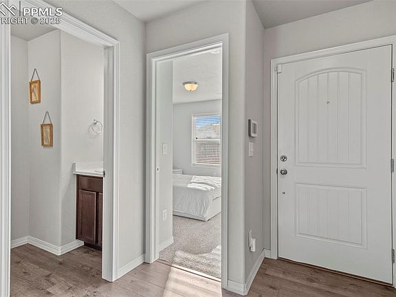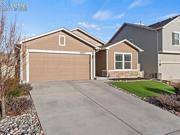 Welcome to this beautifully maintained, better than new 3-bedroom, 2-bathroom ranch home in the highly sought-after Ventana community. Built in 2018, this home offers modern living with low-maintenance landscaping in both the front and backyard, allowing you to enjoy outdoor spaces without the worries of lawn care. Solar panels are included and fully paid for, allowing you to enjoy the benefit of minimal electricity costs without paying the high price of this amazing eco-friendly upgrade. This open-concept home features neutral-toned interiors, creating a warm and inviting atmosphere, ready for your personal touches. The well-appointed kitchen is a chef’s dream, featuring sleek stainless steel appliances, luxurious granite countertops, and a convenient counter bar for casual dining or entertaining. The open layout ensures a seamless flow between the kitchen, dining, and living areas, ideal for both everyday living and hosting guests. Step outside to the fully fenced backyard, providing a private oasis for relaxation or play. The home also includes solar panels for energy efficiency, a whole house water softener, and other modern amenities that enhance both comfort and sustainability. Residents of this home can enjoy the community’s exceptional amenities, including a refreshing pool, hot tub, and fully-equipped gym, all just steps away from your front door. Additionally, with Fort Carson and other military bases nearby, this location is perfect for those looking for a convenient and comfortable living situation close to work and recreation. Don’t miss the chance to make this Ventana Ranch-style home yours — a perfect blend of comfort, style, and community living. Schedule a tour today!