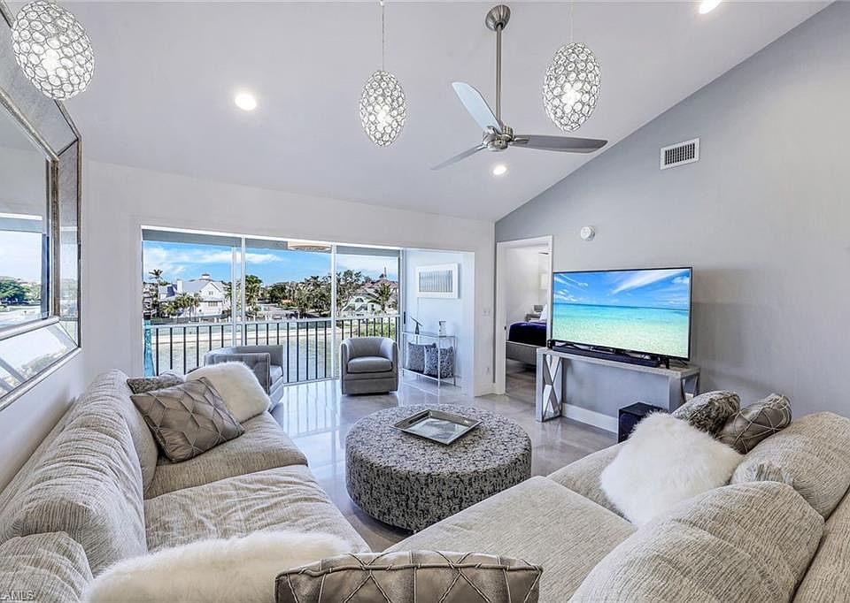 Step into this residence and enjoy views of both the Gulf and the bay the moment you walk through the door. This updated three bedroom two bath condo checks every box. Located on the top floor with high ceilings and an optional boat slip, the unit offers an ideal blend of luxury, lifestyle, and convenience. Begin your mornings watching dolphins in the back bay, and end your days with picture perfect sunsets over the Gulf of Mexico. Beach access is directly across the street, making it effortless to enjoy the sand and surf. Monte Carlo is a gated, low density, and beautifully maintained community on Gulf Shore with low HOA fees. The entire residence has been completely remodeled and upgraded with care, creating a space that feels modern, comfortable, and move in ready. Community amenities include a pool, tennis, pickleball, and a covered parking space. You will not find a better value at this price point. Walking distance to La Playa, the Ritz Carlton, and the Turtle Club. This is a rare opportunity and this condo will not last.