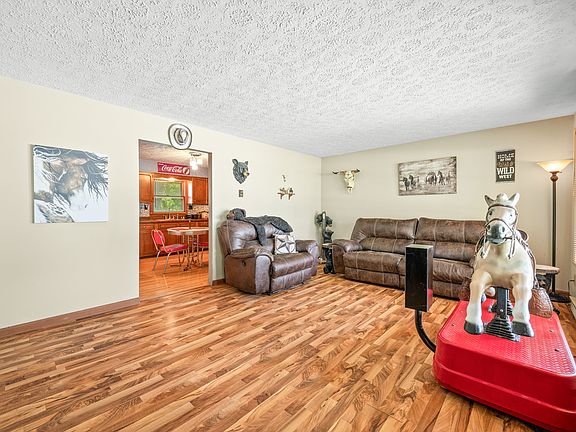 Well-maintained ranch with 3 bedrooms, 1.5 baths, and an attached 2 car garage. This property, set on just over an acre, offers ample space in the backyard for outdoor activities. Featuring large shade trees and a fenced area suitable for hobby farm pets. Conveniently situated in front of Eastern School on highway 54. This house includes all appliances, some furnishings are available, and is move-in ready, waiting for you to make it your home!