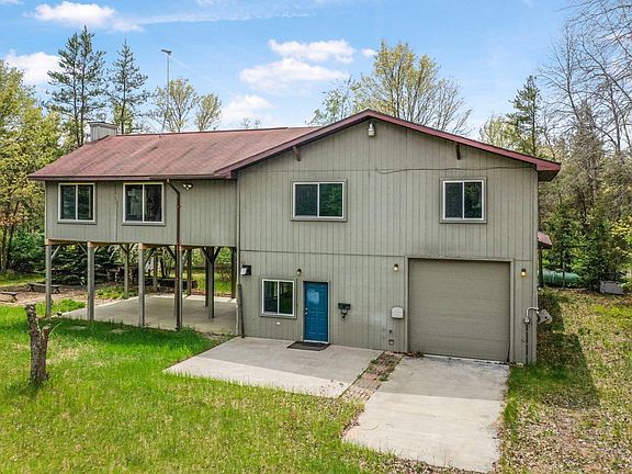 Welcome to this well-maintained 2-bedroom, 2-bath home nestled on 2.5 wooded acres m/l in the heart of northern Michigan’s recreational paradise! Whether you're seeking a peaceful up-north getaway or a comfortable year-round residence, this property offers the best of both worlds. Located near ORV/snowmobile trails, the Au Sable River, Higgins Lake, and thousands of acres of state and federal land, outdoor adventure is just minutes away. Inside, you’ll find a spacious open floor plan filled with natural light from large windows and highlighted by a gorgeous stone fireplace in the great room—perfect for cozy evenings. The home offers forced air heating and central air, with solar panels already in place for added energy efficiency. You'll appreciate the generous storage throughout the home. The lower level features an additional finished room with a cozy pellet stove, a full bath, and a convenient laundry area—ideal for guests, hobbies, or extra living space. Step outside to enjoy the covered patio, perfect for relaxing or entertaining. Additional highlights include a whole-house generator and solid construction. The attached 22x46 heated drive-through garage is truly impressive—oversized, with tall doors, a concrete floor, and full electric—ideal for storing larger vehicles, boats, or recreational gear. The property also includes a 30x45 heated pole building, warmed by a wood stove, with a finished office/man cave and a bonus storage area accessible via stairs to the upper level. This is an estate sale and is being sold as-is. Immediate occupancy available. Buyer and buyer’s agent to verify all information.