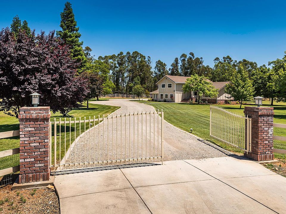 Beautiful Gated Custom Country Estate on 4 1/2 acres in Prestigious Sheldon Woods. Tri-level home w/ marble & granite counters, extra insulated 2X6 walls, new exterior paint, 2 car-attached garage & 4-car tandem detached garage w/ workshop. About half of property is landscaped & gorgeous! 5 BR, new MB 2016, new deck 2016, whole house fan! Tile, oak wood & carpet flooring. Both A/C units replaced in recent few years. Very low local tax & located in Pleasant Grove High area. Quiet & Peaceful. Zoned for horse property and fully-fenced. On corner of Burnt Spur Court and Sheldon Woods Way just off of Grant Line Road.