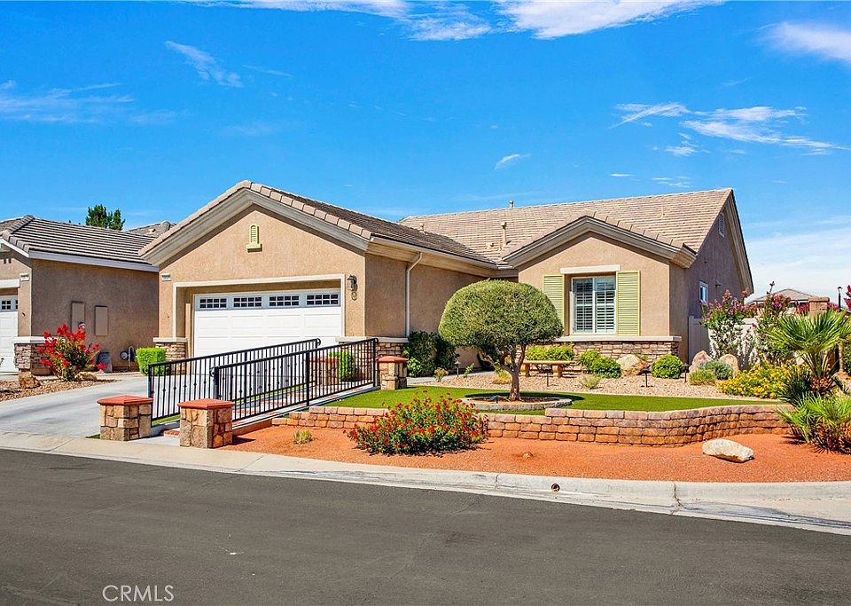 Gorgeous On Corner... Solera Home Located in the High-Deserts most Desirable 55+ Del Webb Sun City Community. High end upgrades throughout include beautiful Built-in Wall Units, Plantation Shutters, Crown Molding and Custom Kitchen Cabinets. A Rare find, this meticulously maintained 2-bedroom Home features an additional Private Bonus Room to be used as an Office or to accommodate overnight guests. Just Installed Brand-New Goodman 4 Ton Heat & A/C Unit, New Hunter Ceiling Fans in Living Room and Dining Room, New ECO Water System at Sink Tap and New Paint.The property’s landscaping boasts mature plants/flowers coupled with well thought out hardscape providing low maintenance without sacrificing beauty. Located directly across from the Club House, Owners enjoy the close proximity to all the Community’s Amenities and activities. This Turn-Key Home truly has it all and is a must see to Believe. Best Part is This Home can be SOLD Furnished as an Option!!! Hurry Out To See This Beauty!!!