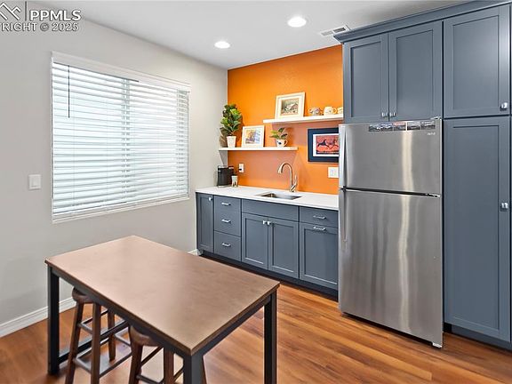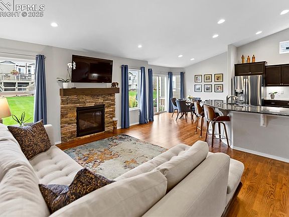 Amazing maintenance free living, upgraded main level living rancher in the super desirable North Fork at Briargate community! The HOA completely manages the lawns, snow removal, trash removal - allowing you time to concentrate on what matters most in life! This is the best of both worlds - living in a single family home without the hassles of yard maintenance. Award winning School District 20 and walking distance to Pine Creek High School. The main level is bright and open with vaulted ceilings, beautiful oak hardwood floors throughout most of the main level, gas fireplace and central air conditioning. Spacious kitchen open to the great room with an abundance of upgraded cabinetry, slab granite counters, large island, under cabinet lighting, stainless appliances and a pantry. Main level primary suite with large window overlooking the lush grounds, walk-in closet and private bath with a double vanity, Quartz counters and an over-sized shower with bench and seamless shower surround. 3 bedrooms, 3 baths and an office. Fully finished lower level with a large bedrooms, bath, game area, family room and a large wet bar with full size fridge, sink, tons of cabinetry and Quartz counters. Room to add a 4th bedroom in the lower level unfinished area. Central vacuum system. Fully finished and insulated garage with epoxy floors. Plenty of outdoor entertaining space with a covered front patio, back patio and a fenced dog run. Quick access to the Air Force Academy, I-25 and the amenities of Powers and Northgate in northern Colorado Springs. Amazing outdoor recreation opportunities nearby with miles of walking trails, Section 16 Open Space and Black Forest Regional Park.