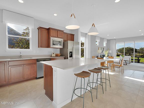 Great opportunity to live the Del Webb lifestyle in one of the most sought-after gated active adult neighborhoods in Northeast Florida! Fantastic location with easy access to upscale shopping, fine dining, and premium health care, all within minutes of our beautiful Florida beaches! Take in a workout or exercise class in the fitness studio, enjoy a game of pickleball or tennis with friends, swim laps in our resort style pool, and connect with new friends and neighbors at our 8,000 sq. ft.+ clubhouse. This cozy single-story Contour home (ready SUMMER 2023) has an oversized lanai backing up to our beautiful nature preserve, but also an extended depth garage. 2 bed/2 bath Contour home will feature an open gourmet kitchen, 9 ft ceilings, beautiful 42'' cabinets, and wood-look tile Flooring.