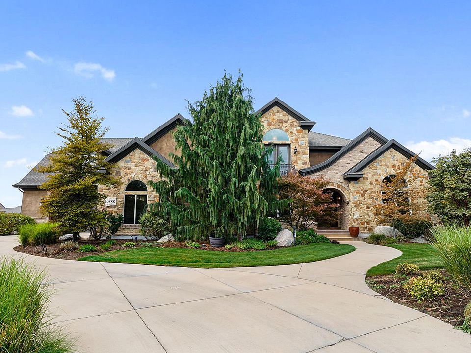 Welcome to Bison Ridge Estates, one of South Jordan's most prestigious neighborhoods, where timeless design meets modern comfort. This custom Tuscany-inspired 2-story estate sits on a rare 0.79-acre lot, offering privacy, luxury, and beautifully curated outdoor living. This home is more than a residence-it's a statement of craftsmanship, comfort, and elegance in one of South Jordan's most sought-after communities. The exterior boasts authentic stone, brick, and stucco with detailed soffit crowns, arched entry, and designer lighting. Step into manicured grounds with a custom timber pergola and fire pit retreat, a handcrafted swing, dry creek bed, and vibrant gardens-all framed by pre-cast fencing for both beauty and privacy. Multiple entertaining spaces include a covered patio, large deck, and walkout basement, creating a seamless indoor-outdoor flow. Inside, more than 8,200 square feet of refined living awaits. Soaring cathedral ceilings and rich finishes set the tone, featuring custom mahogany cabinetry, solid wood doors, built-in shelving, and 10" base moldings. The gourmet kitchen is a chef's dream with Thermador appliances, dual dishwashers, oversized island with detailed millwork, granite counters, and a striking range framed by ornate custom woodwork. The main-level primary suite offers a spa-like retreat, complete with dual stone vessel sinks, oversized walk-in shower with multiple sprays, a soaking tub under arched windows, and a custom-designed walk-in closet. Upstairs, you'll find a spacious family room overlooking the main level, additional bedrooms with private baths, and flexible spaces perfect for work or play. Though not fully finished, the basement is framed and drywalled for a large theater, second kitchen, expansive family area, three bedrooms, and two additional bathrooms-adding incredible potential and value. Every detail was built for efficiency and longevity, including 2x6 exterior framing, full spray foam insulation, dual geothermal heating and cooling, and an interior fire sprinkler system. The home also includes an extra-deep 4-car suspended garage with additional oversized 2-car garage below.