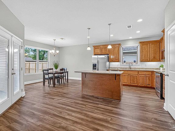 Step inside this exceptionally clean and well-maintained home in Millview Estates! This beautiful property features a bright, open floor plan with tall ceilings and a wide foyer that creates an inviting first impression. Natural light enhances the neutral color palette, highlighting the Spanish lace textured walls and elegant rounded corners. The kitchen is open to the living and dining areas, offering a spacious layout perfect for entertaining. Enjoy the large center island for your morning coffee or casual meals. The kitchen is equipped with stunning maple cabinets, granite countertops, stainless steel appliances, a built-in microwave, pantry, and plenty of workspace. The split-bedroom design ensures privacy, with generously sized secondary bedrooms and a spacious primary suite. The primary bedroom features a tray ceiling for added architectural interest and a custom look, along with a large walk-in closet. The en-suite bathroom includes a double vanity, separate shower, relaxing garden tub, and private water closet. Additional highlights include a full guest bath, interior laundry room, and manicured landscaping professionally maintained (sprinkler system recently installed). The privacy-fenced backyard features a covered porch and a hot tub that conveys with the sale—perfect for relaxing evenings at home. Recent upgrades include spray foam insulation for improved energy efficiency and soundproofing, additional gutters, privacy fencing, and blackout blinds. The water heater was replaced in 2025, along with new toilets, dishwasher, microwave, and kitchen faucet. A Reme Halo whole-home in-duct air purifier enhances indoor air quality, and a termite bond provides added peace of mind. Conveniently located near shopping, dining, NAS Pensacola, downtown, and the area’s beautiful white sandy beaches. No HOA. Call today to schedule your personal tour!