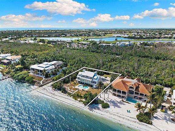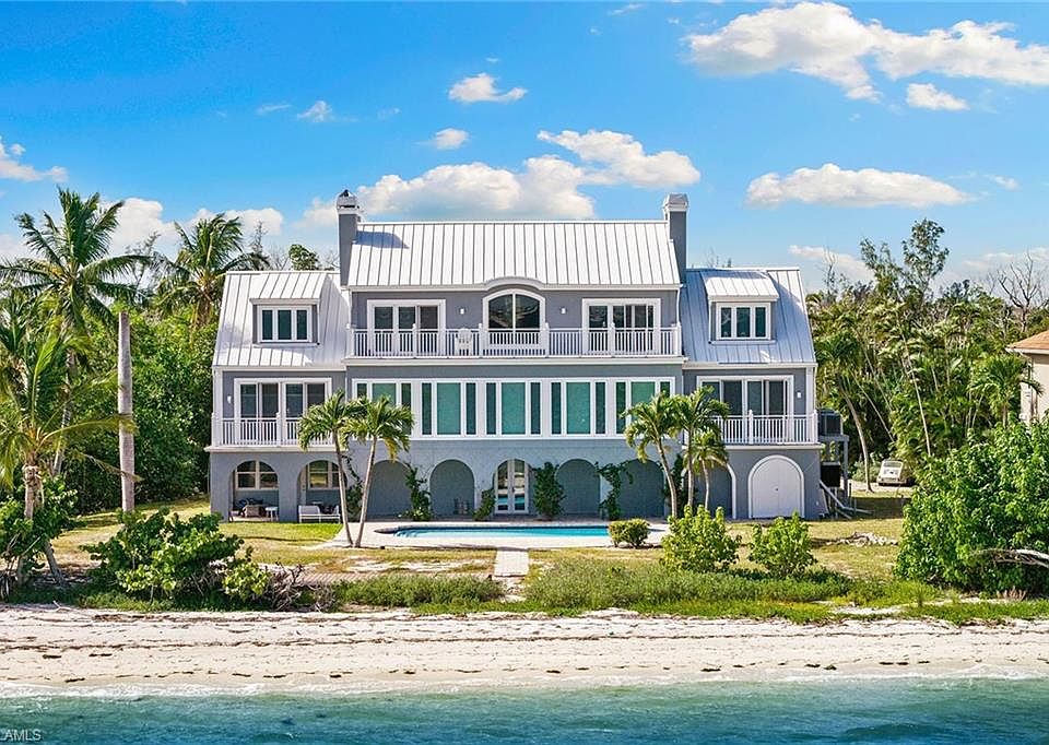 Experience the pinnacle of coastal living with this extraordinary 5,542-square-foot beachfront residence on Sanibel Island. Positioned on a private .86-acre lot adjoining protected conservation land and boasting 150 feet of waterfrontage. Designed for elegance and comfort, this four-bedroom estate captures sweeping bay views from nearly every room, the home features gracious living and dining areas with a fireplace and walls of glass that open to breathtaking panoramas. The expansive layout includes an inviting spacious kitchen with wide water views, a luxurious and spacious primary suite, a private office, and a serene sitting room to enjoy bay views, all accentuated by timeless hardwood flooring and impact-rated windows and doors. The top floor houses guest suites and a second primary suite. Gi outside to an inviting heated beachfront pool overlooking the wide bay, an ideal setting for tranquil relaxation or refined entertaining. With unmatched privacy, stunning natural surroundings and potential to create a private world-class single-family retreat, this property offers an exceptional opportunity to own one of Sanibel Island’s desired waterfront addresses. The home received damage to the lower non-living area during Hurricane Ian, the pool and garage have been restored, but storage areas, landscape and irrigation system requires repairs and updates. The home is in the sought-after area of Bird Lane within a few minutes of the Sanibel causeway and bridge for easy access on and off the island and offers incredible potential for updating and personal touches. The home is being offered in as-is condition.