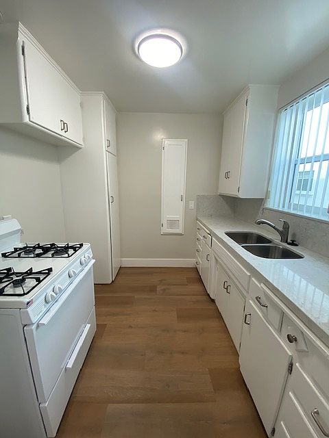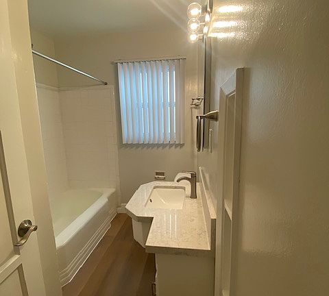 This lower level unit is in the Bixby Knolls area of Long Beach. The kitchen and bath have quartz countertops. New windows installed. Luxury vinyl flooring throughout and fresh paint. Stove included and laundry room on-site. Garage available to $100/month. To view our vacancies come to our office, we hold ID while keys are taken out 929 E Wardlow Road, Long Beach Monday-Friday 9:30-12 and 1:30-5, come no later than 4:00 to pick up keys Vacancies listed on our website Godin Properties Owner pays for water. No dogs. No smoking.