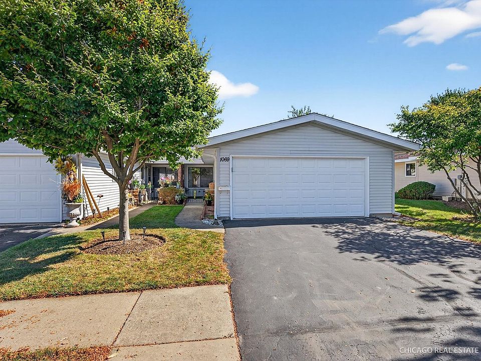 Welcome to 1069 Mohegan Ln! No stairs here: easy first floor entry and pleasant open floor plan in this spacious ranch duplex. Providing generous living space: 2 good size bedrooms, 2 full baths, attached 2 car garage, eat in kitchen with access to patio and side yard, dining room or office space, separate laundry/utility room. Bright, fresh and move in ready: The home was professionally painted throughout, new carpet installed, new windows treatments, kitchen with upgraded set of NEW ss appliances and loads of solid raised oak panels cabinets. Charming front porch for Summer evenings sit out or morning coffee and patio right off the kitchen for grilling and quick access to the yard. Located in excellent D54 School District and D211 Schaumburg HS. Convenient access to METRA , 390, 290, 355 highways and all Schaumburg shopping, dining , entertainment. Bring your furniture and make it yours!