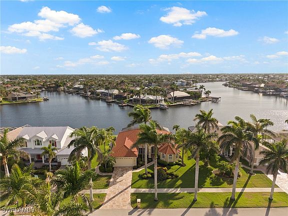 Beautifully remodeled, with NEW ROOF (2024), this 3-bedroom, 2.5-bath single-family home is a rare find under $1M. Imagine… you can design your own custom dock and have it installed right away since there’s currently NO EXTRA WAIT TIME for permitting (30 days for permit and 30-45 days to build)! Located on a 220 foot wide canal in the luxurious Tarpon Point / Rose Garden area of southern Cape Coral, it offers quick access to open Gulf waters—just 1 mile by boat. Gorgeous curb appeal with natural stone pavers on the driveway, queen palms, lush grass, and tropical landscaping. Inside, you’ll love the all-new kitchen with high-quality cabinetry, beautiful granite countertops, and stainless steel appliances. New wood-look long plank tile flows throughout the home, complemented by LED lighting, updated bathrooms, and a spacious primary suite with dual walk-in closets and a luxury ensuite bath. As you walk through the front door, you're greeted with immediate views of the water beyond your private pool. The backyard oasis features natural stone pavers on the pool deck and tropical vegetation for a true Southwest Florida retreat. With 85 feet of seawall in excellent condition, the property is ready for your custom dock and we have a quote on hand! Other features include whole-home storm protection with electric shutters and a transferrable, affordable flood insurance policy. Best of all—there are no HOA fees. This is waterfront living at its finest in one of Cape Coral’s most desirable neighborhoods!