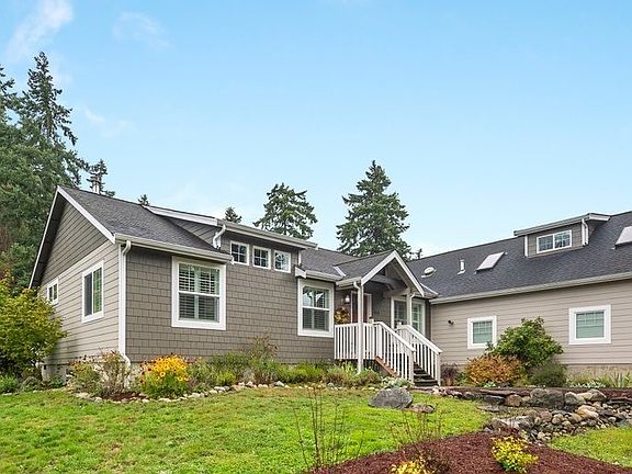 Experience Island life in this immaculate single story home- Frm the private community beach to the abundant forest,trails & wildlife. Quality custom finishes throughout. Vaulted Ceilings,extensive hardwoods,Cape cabinetry,granite & subway finishes w/ new appliances. Gracious master w/ en-suite & walk-through closet. Spacious guest room, Home Office & Music room w/sound reducing const. Large garage w/ media room loft. Detached shop wb great art studio/hobby rm.Lush gardens,fruit trees,RV parking