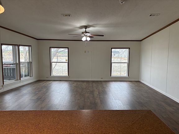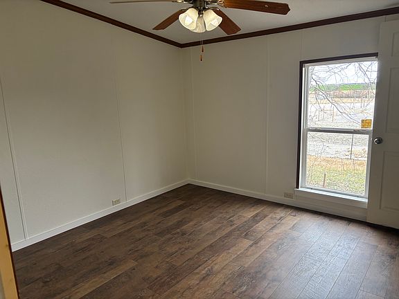 2000 square feet open spacious living with new flooring and paint throughout the home. Is nestled among trees with the front porch facing the beautiful sunset overlooking 85 acres of farm land. Get a little peace and quiet just 10 minutes from town. Owner pays for water - tenant pays for electric, garbage, internet. One year lease- this is a no smoking property. Tenant responsible for yard upkeep. No vehicle storage. Only operable daily vehicles.