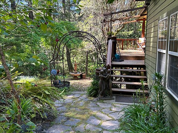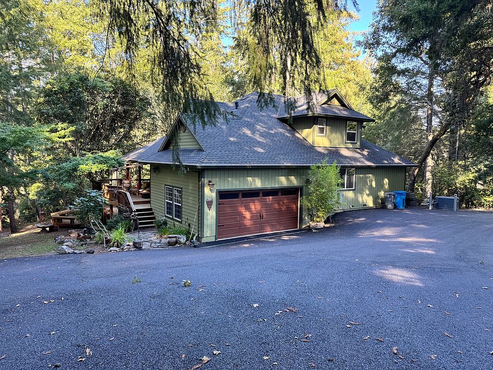 Stunning staircaseLovely balconyNew exterior paintNative plants and flowersNew roofSurrounded by glorious redwoodsLots of windows