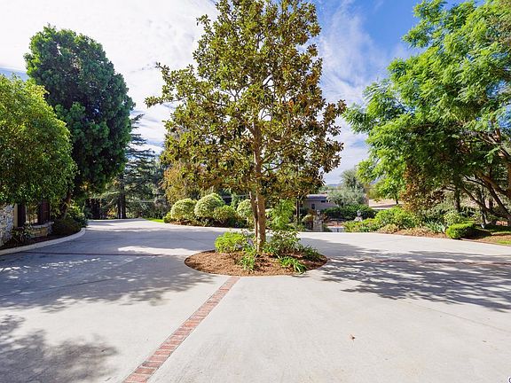 Moments from the hustle and bustle, and behind the gates of the 24 hr guard gated community Monteria Estates, lies an English Tutor mansion surrounded by mature trees and fragrant rose gardens. This serene and private paradise is sited on a flat 2 acres behind a second set of gates affording privacy and security. The impressive motorcourt and 4 car garage provides plenty of parking. The downstairs living space features a grand staircase entry, living room, sitting area, formal dining room, family room, game room, wine storage, a newer chefs kitchen featuring premium appliances that will delight any cook, a breakfast room, and a downstairs BR+BA. Going up the second staircase, takes us to 3 BR + 3BA, a library, a study/office and the sumptuous master suite. The master suite is adorned with high beamed ceilings and a massive FP which sets the tone for this lavish space. The master bath has an oversized shower, spa tub and heated floors. Backyard entertaining is a breeze with a pool & spa, an oversized outdoor kitchen, cabana, a lighted N/S tennis court, a guesthouse, a fruit orchard. Massive upgrades including replacement of all baths and kitchens ; roof, HVAC, water heater, drip irrigation. EZ access to 118, shopping & dining