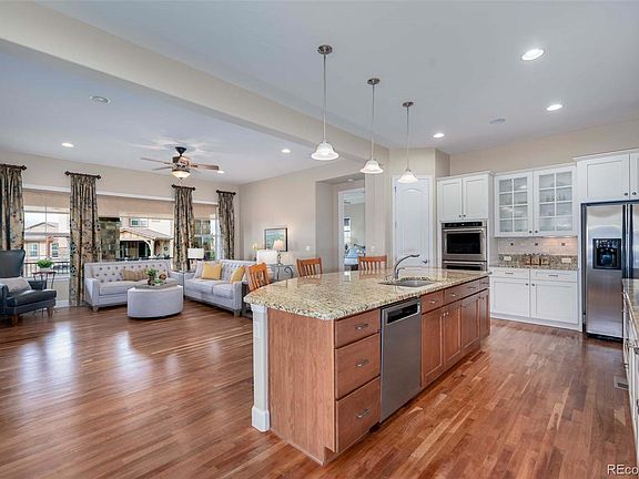 Nestled in the heart of the remarkable BackCountry community, this exceptional ranch with three-car garage is set amidst sweeping open space, creating incomparable suburban serenity just minutes from the city. Bask in million-dollar mountain views from the showstopping covered deck and patio! An entertainer’s dream, this open floorplan was built with hosting in mind. Thoughtful additions such as a butler’s pantry off the dining room, a serving buffet in the eat-in area, and a massive eat-in island stand up to your largest event or most intimate gathering. Tray ceilings and crown molding add a touch of old-world charm, as gleaming hardwoods ground the bright and airy space. Oversized windows with picturesque views are enhanced by striking custom window treatments. Built for the chef at heart, the updated kitchen boasts granite countertops, abundant luxurious white cabinetry, and high-end stainless-steel appliances including a five-burner gas range. Mountain views greet you in the primary suite, as a door to the wraparound deck invites you to begin your day with fresh air. The primary bath offers a soaking tub, glass shower with bench, and a generous walk-in closet with access to the main-floor laundry. The home’s incredible basement provides a perfect place for hosting, whether it’s a gaggle of overnight guests, or the big game! A spacious living area and impressive bar complete with wine fridge, dishwasher and custom old-world touches leads out to the wraparound covered patio, cloaked in stunning views. Two basement bedrooms and a full bath provide separation of space for guests. Enjoy resort style amenities in this gated community, including sparkling pools with firepit and dining areas, fitness studios, miles of open trails, parks, an upscale private pub, and access to the award-winning Sundial House! Set just north of the Backcountry Wilderness Area, embrace outdoor adventure with over 8,200 acres of conservation land to explore.