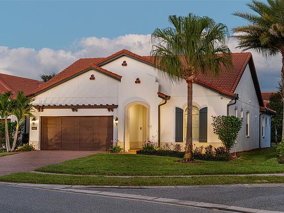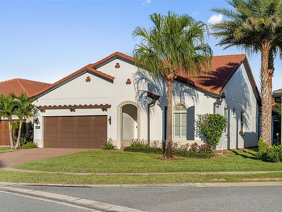 Stunning single-story Toll Brothers home in the desirable 24-hour guard-gated community of Royal Cypress Preserve. This beautifully upgraded four-bedroom, two-and-a-half-bath residence showcases timeless Spanish Colonial architecture with a classic Spanish tile roof, 10-12-foot ceilings and elegant 8-foot doors throughout. The home's open-concept design creates an effortless flow between the great room, dining area and gourmet kitchen, providing an inviting space for everyday living and entertaining. The gourmet kitchen is a chef's dream, featuring soft-close cabinetry and pullout drawers. Cambria Brittanica quartz countertops, a custom glass mosaic backsplash, under-cabinet and above-cabinet lighting, and premium KitchenAid stainless-steel appliances including a built-in 42-inch refrigerator, gas cooktop and double wall ovens. A large center island serves as heart of the home, offering abundant prep space and casual seating for gatherings with family and friends. The great room is enhanced by coffered ceiling featuring built-in rear surround speakers, custom designer lighting and triple pocket sliding glass doors that open to an expansive screened lanai, creating seamless indoor-outdoor living. The lanai is ideal for entertaining, outdoor dining, or relaxing while enjoying private views of the beautifully landscaped backyard. The spacious primary suite serves as a serene retreat, featuring a tray ceiling, dual walk-in closets and a spa-inspired bath with frameless glass shower, rain and body-spray fixtures, a luxurious soaking tub and dual quartz-topped vanities. Three additional bedrooms offer flexibility for guests, a home office, fitness space or media lounge. Additional highlights include hardwood flooring throughout all main living areas and bedrooms, custom plantation shutters, crown molding, upgraded lighting, and a spacious two-car garage with epoxy flooring and storage cabinetry. Residents of Royal Cypress Preserve enjoy an exceptional maintenance-free lifestyle with lawn care included and resort-style amenities such as a lakeside clubhouse with a zero-entry pool, modern fitness center, dog park, playground and private boat ramp with access to scenic South Lake. The community is ideally just minutes from Golden Oak, the Four Seasons Resort, Walt Disney World, and Orlando's world-class shopping, dining and entertainment venues. With its architectural elegance, open layout and premium location, this home blends luxury, comfort and convenience within one of Central Florida's exclusive gated communities.